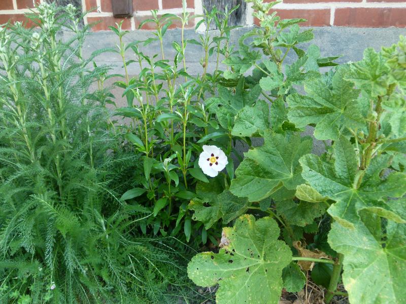 Cistus x cyprius hatte ich im letzten Jahr von einer Tauschfreundin bekommen. Eine schöne Jungpflanze. Den ersten Winter hat auch er ausgepflanzt sehr gut überstanden.