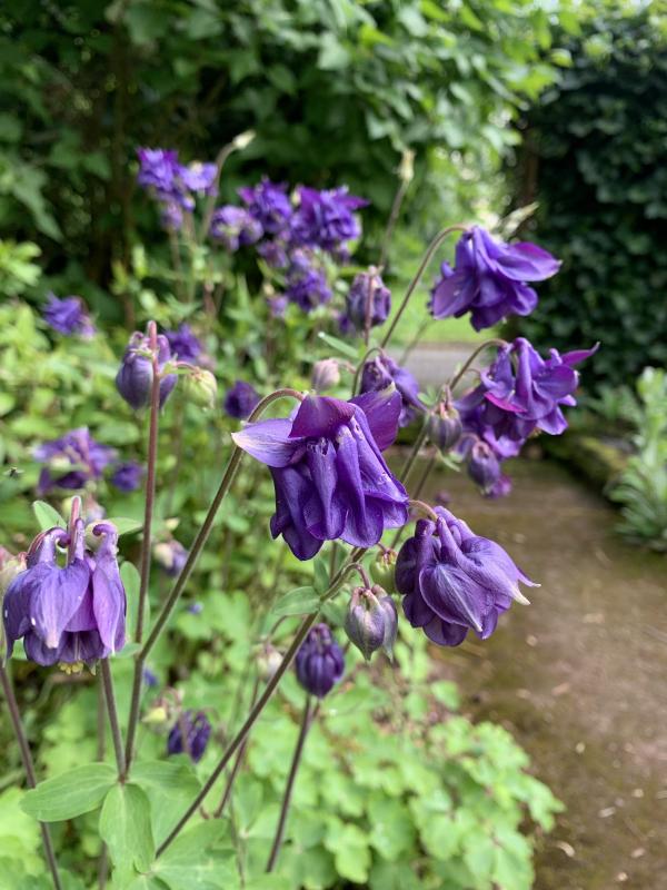 Dies sind sehr hohe, großblütige aus der Aquilegia Tauschaktion. Sie sind dunkelblau, aber auch rein weiße sind dabei.