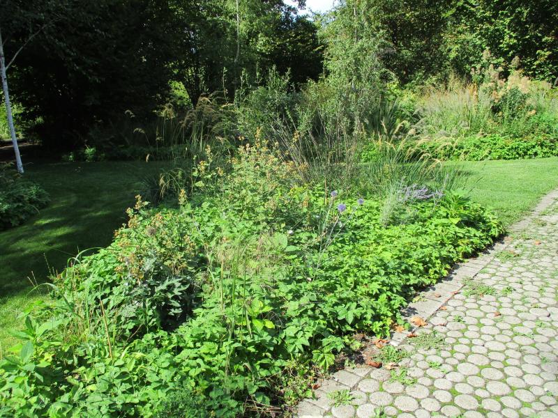 Da ist meiner offenbar schlecht erzogen. Ich habe ihn leider mit einigen Pflanzen aus dem alten Garten mitgebracht, da wuchs er in einem Beet. Inzwischen wächst er in vielen Beeten, er vermehrt sich über Ausläufer und Samen. Ich jäte zwar im Frühling noch, aber wenn alle Stauden hoch wachsen, gibt es andere Prioritäten und man sieht den nachwachsenden Giersch schlechter.