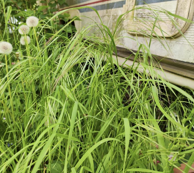 tt, ich dachte dieses unsägliche Gras, was sich hier in jedes Beet ausgesät hat, da gehören die nicht hin!, sei Bromus sterilis?