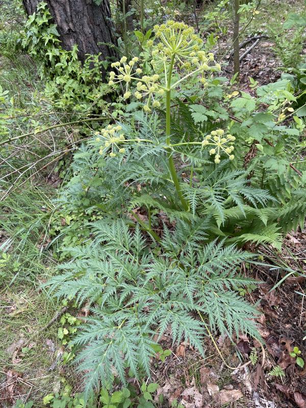 Molopospermum peloponnesiacum - die erste von 5, aber auf trockenerem Platz als die anderen, die dafür noch lange nicht so weit sind, aber dafür deutlich größer