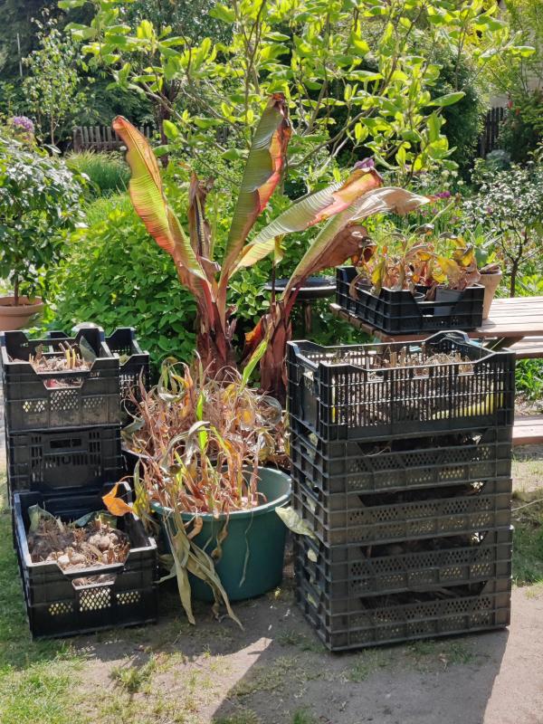 Heute durften die Kellerkinder wieder ans Tageslicht. Das ausgeräumte Topfgeschwader zeige ich lieber nicht. Etliches ist auch schon verteilt und in der Erde.