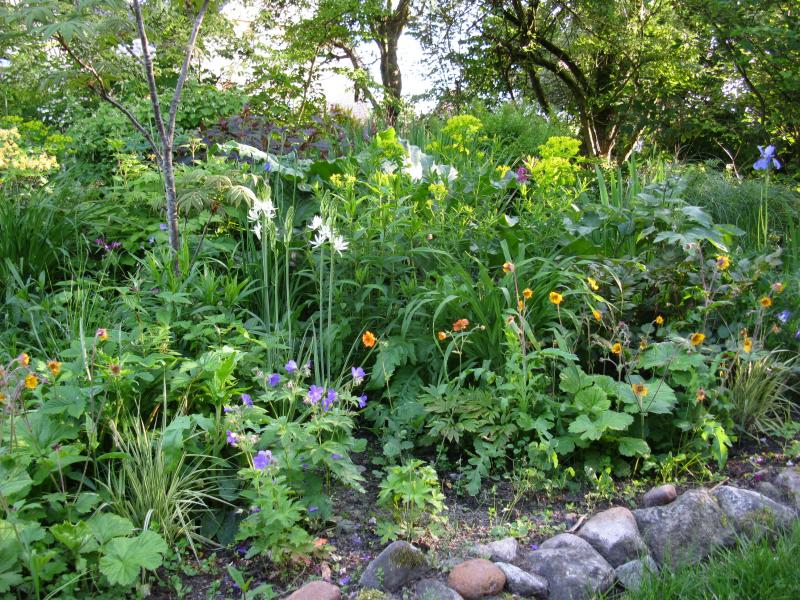 Wenn schon zwei Storchschnäbel werde ich vermutlich das violette Geranium sylvaticum durch Geranium Album an den Rändern ersetzen und Orion im Hintergrund wuchern lassen.