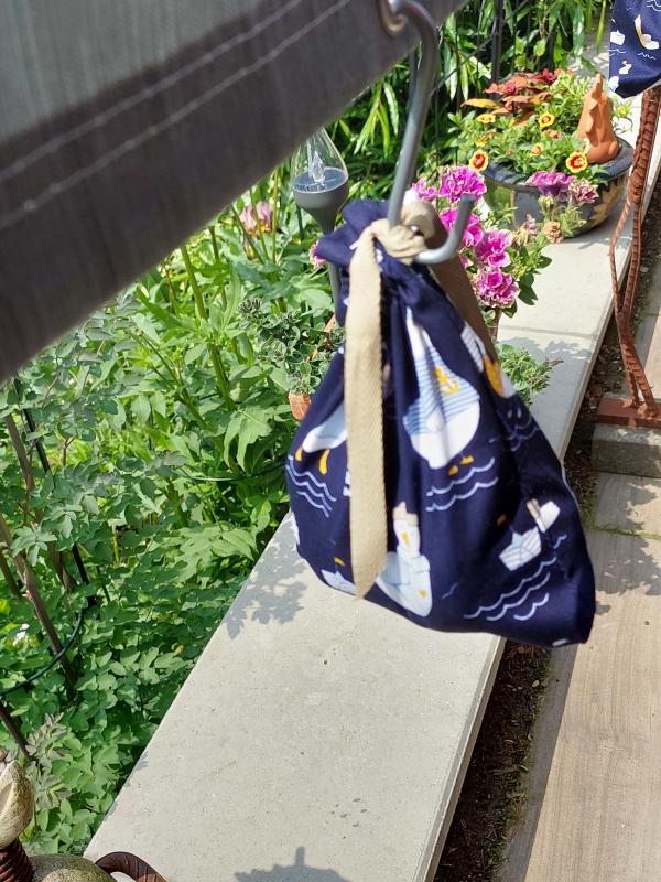 Wir hatten das Problem, dass Nachmiitags bei tieferem Sonnenstand die grosse Markise der Terrasse kein Schatten mehr spendete. Wir haben nun von Markilux ein grosses Volant anfertigenn lassen über die halbe Breite der Markise. Aber vei Wind flapperte das Volant immer weg. Ich habe nun Säckchen gebastelt in denen jeweils als Gewicht ein Granitpflasterstein ist. Oder es hängt eine schöne Lampe dran. Durch die Ösen und Haken kann man alles Mögliche dran hängen.