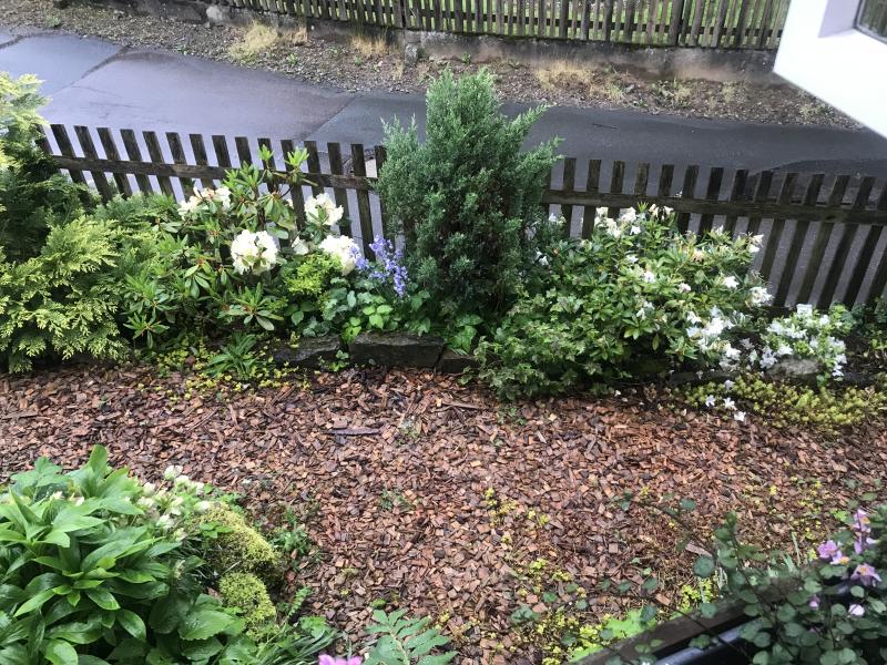 Des Weiteren haben wir hier sehr kalkhaltiges Wasser, sodass ich alles per Hand mit Regenwasser gieße. Wenn das Regenwasser mal alle ist, muss ich dann doch mal aufs Leitungswasser zurückgreifen welches schnell zur Chlorose führt...Jetzt habe ich auch noch diese Andromeda Netzwanzen... Als nächstes werde ich mich um die Unterpflanzungen der Rhodos kümmern. Funkien, Glöckchentrauben und Bergenie als Herbstblüte (Weitere Vorschläge gerne!). Mal gucken, ob die miteinander harmonieren. Bei mir sieht es im Garten auch noch viel zu steril aus. Aber da ich alles selber mache und es ein Neubau ist, kostet es halt seine Zeit und ich hatte am Anfang viel Rasen und Mulch welches über die nächsten Jahre weniger wird. Des Weiteren habe ich noch zwei kleine Kids. Da kommt die Zeit für den Garten auch viel zu kurz;)