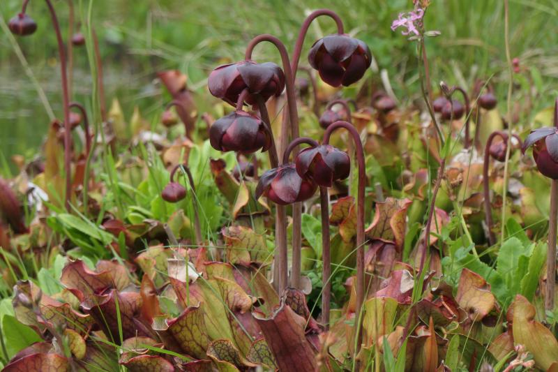 Fast wie Ufos am Teichrand: Sarracenia puprurea beginnt zu blühen: