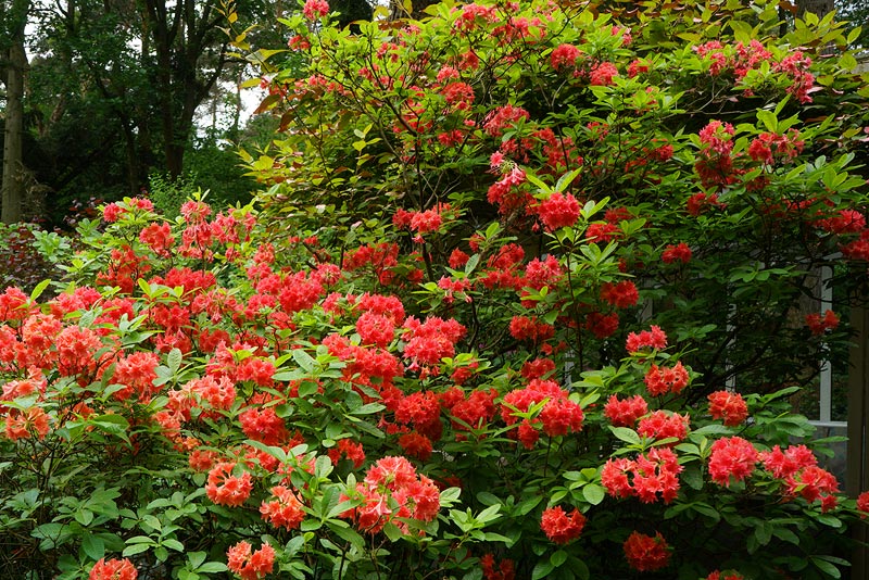 Ja, irgendwas feuriges würde schon passen, vielleicht 'Fireball'? Die Blüten sind halt eher signalrot als orangerot, die Azalee ist um 1960 gepflanzt worden. Mir ist die Rhodo-Recherche leider insgesamt zu zeitaufwändig.
