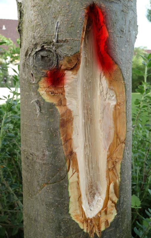 So sehen die Risse bei mir aus, wachsen alle wieder zu. An einem (2.Bild) hatte ich auch ausgeschnitten, wäre nicht notwendig gewesen, dauert nun 3-4 Jahre bis der wieder zu ist. >>>