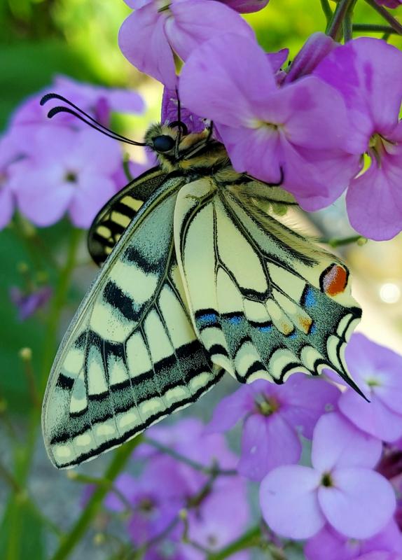 Ich bin mal gespannt, ob ich hier irgendwann auch wieder einen Segelfalter entdecke, eigentlich sind die hier noch recht häufig. Ein Schwalbenschwanz war letztes Jahr regelmäßiger Besucher an den Spornblumen im Vorgarten. :)