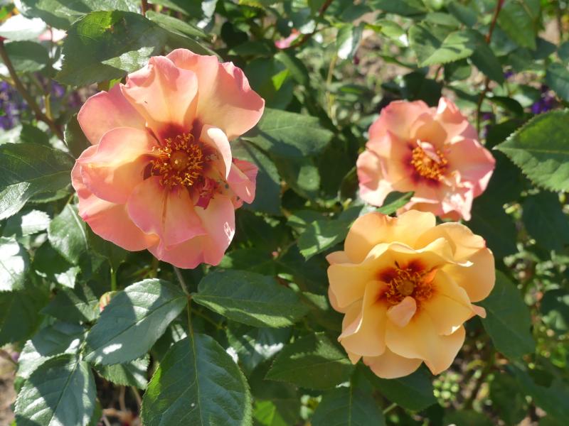 Blush, danke auch an dich. Bei York & Lancaster gefallen mir die Blütenfarben und die Geschichte. Der Wuchs ist nicht so prickelnd, sie wächst hoch, die untere Hälfte ist nackt. Die Triebe sind eher dünn und müssen festgebunden werden, der schattigere Platz zwischen anderen Rosen könnte das verstärken. Deshalb hatte ich nur das Blütenfoto gemacht. :-X