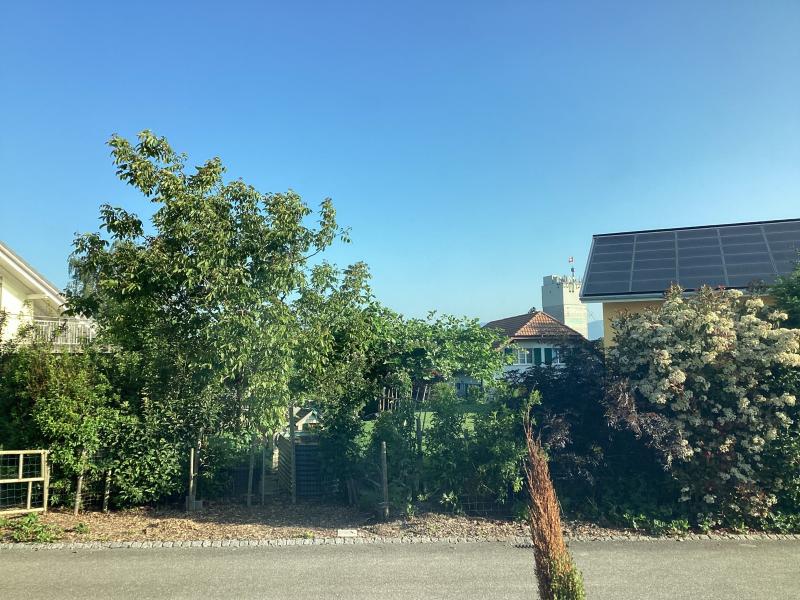 Rasenpartie am Arbeitsplatz schon zu Tagesbeginn gemäht.