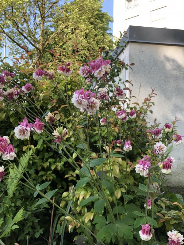 Hier blüht erstmalig ein lilarosa, sehr großblütiger und kurzsporniger Typ mit schöner Blütenform. Die Samen hatte ich auf einer Wanderung am Comer See von ausgeblühten Pflanzen in einem Wald mitgenommen, dachte an A. atrata. Diese gefällt mir aber auch gut.