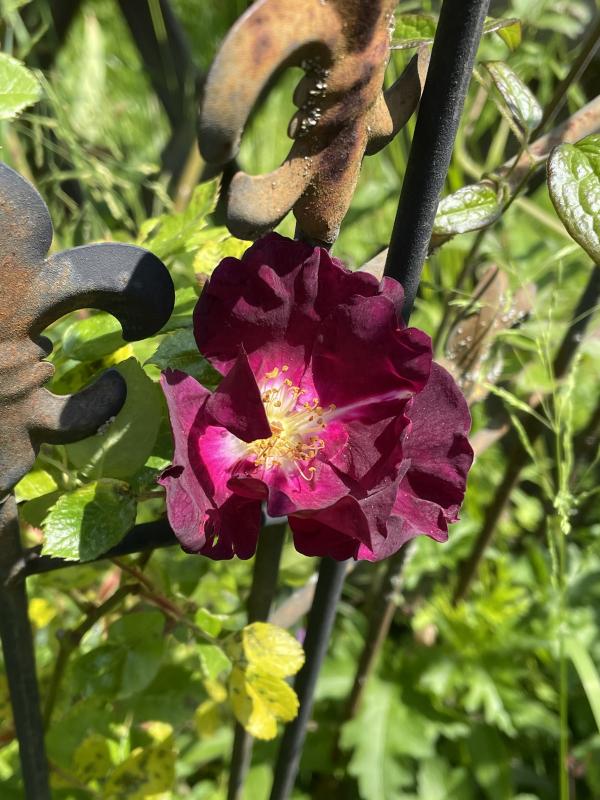 Hier wächst York & Lancaster etwas anders, eine Stütze braucht sie nicht. Sie steht allerdings sonnig. Insgesamt wächst sie aber auch hier im Vergleich zu anderen Damaszenern schwächer und der Strauch ist eher " luftig".