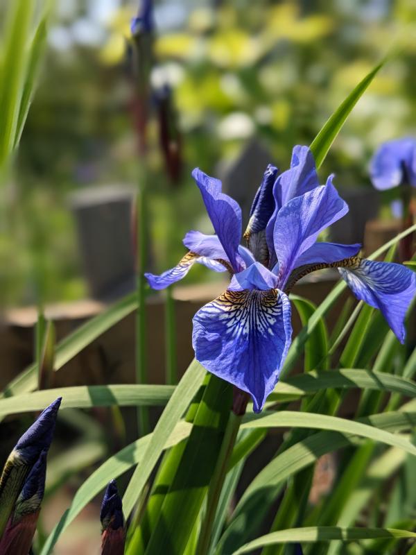 Und die einzige Blüte von 'Caesar's Brother', die vielleicht an den breiteren Hängeblättern leicht von anderen blauen sibirischen Iris zu unterscheiden ist. Weil wir das Thema neulich hatten.