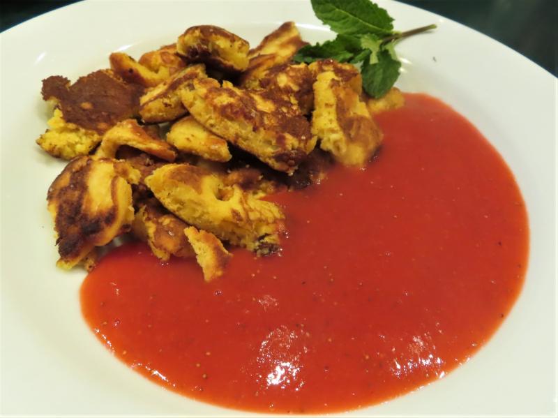 Samstagessen war dann eine leicht scharfe Krautsuppe (Frühkraut, Karotten, Sellerie, Paprika, Kartoffeln, Zwiebel, Liebstöckl) und Kaiserschmarrn mit Erdbeersauce. Als Hauptgericht ;), wahlweise mit...