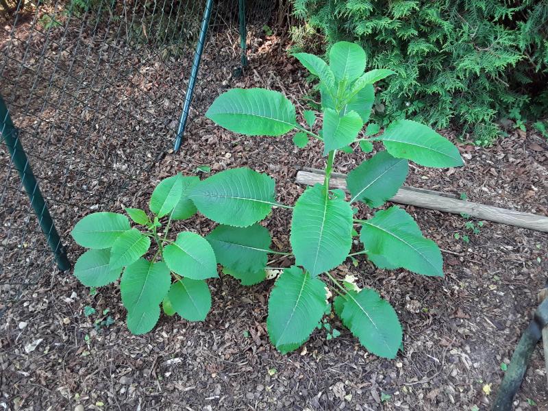 Die hier im Garten gelegentlich wachsenden Sämlinge der Robinie auf dem verwilderten Nachbargrundstück haben alle Stacheln.