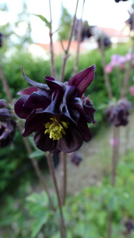 Ich wollte an sich nur violette und schwarzrote und purpurfarbene Alkeleien im Garten haben, aber diese zartrosa vom Barlow-Typ mochte ich dann doch nicht herausreißen.