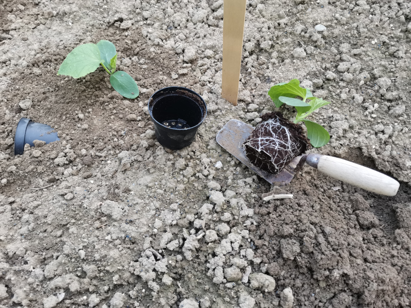 Und die drei Salatfreilandgurken - raus aus den kleinen Töpfchen, rein ins Leben und Gürkchen abknipsen??