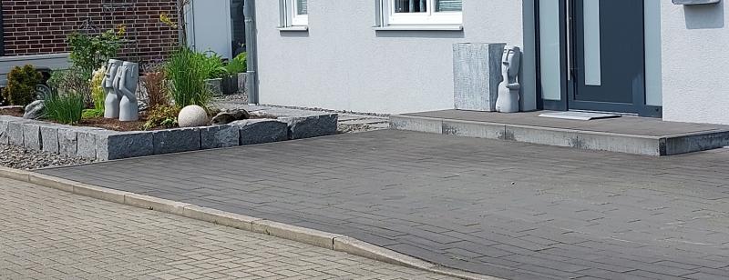 Gebaut wurde ein Protzvorgarten, mit riesigen Steinklötzen.