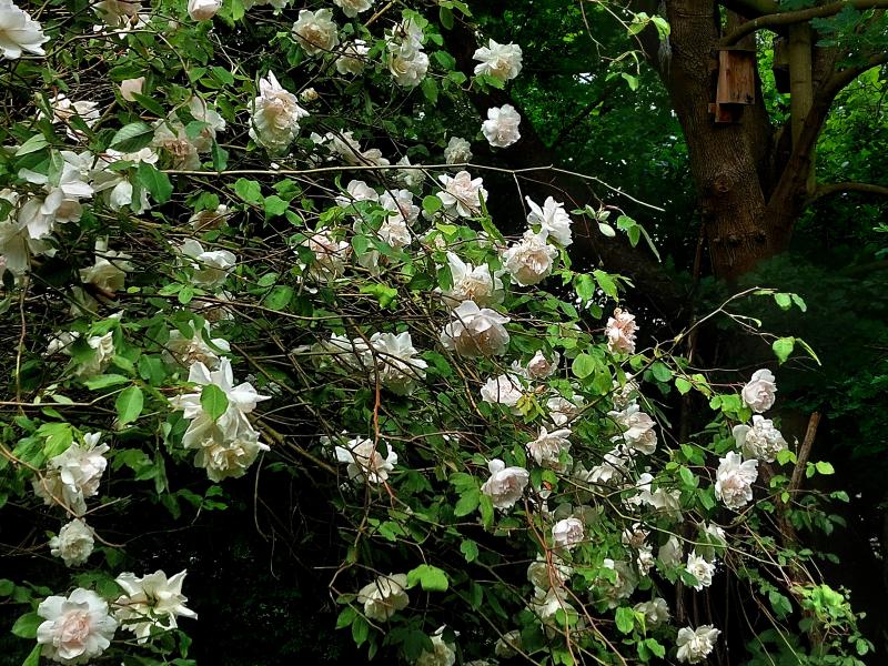 Mme Alfred Carriere, leider viel Totholz, weniger Blüten -- braucht Zuwendung und Dünger.