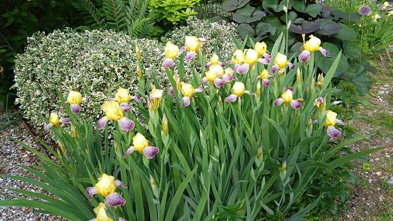 Diese Iris..... steht auch in voller Sonne und sehr trocken, die Rhizome liegen fast nur auf Sand, Unterboden Lehm.