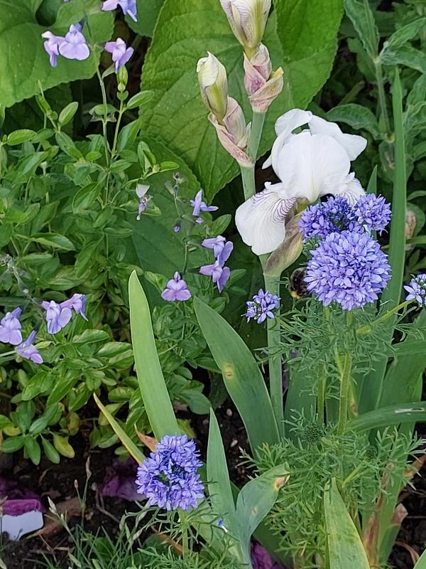 Gilia capitata, Iris Mrs Horace Darwin und lila Salvia greggii.