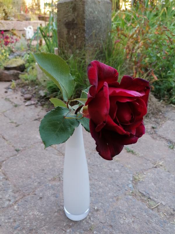 Um die frisch gesetzte Rose etwas zu entlasten, hab ich die erste Blüte geschnitten. :D