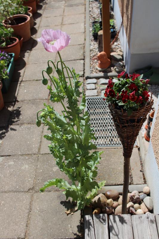 Ich bin schon gespannt, wie das langfristig aussieht, im Spalt zwischen Gehweg und Mauer haben sich etliche Spornblumen und dergleichen ausgesät, die werden sicher auch bei größter Dürre den ganzen Sommer lang blühen.