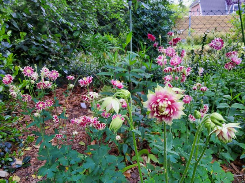 Auch in meiner Straße wachsen Akeleien wie Unkraut. Nur leider die kurzstängeligen, dazu in Schlüpferrosa und Blau.