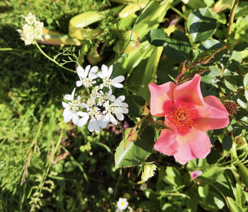 Ein schönes Paar, wie ich finde: 'For Your Eyes Only' (danke, Gänselieschen :)) und Orlaya grandiflora.