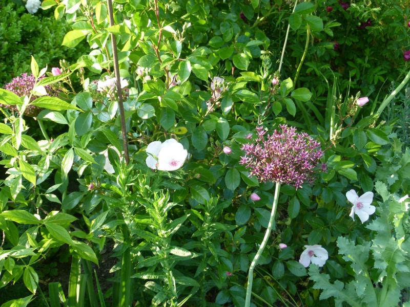 Die Mutterrose blüht noch kaum, andere sind da fleißiger ;D Das ist eine Böschung, oben und unten stehen die Wiesenmargeriten, die Rosen dazwischen. Puristen bekommen da Blutdruck, in einem großen Garten "muss " das . :)