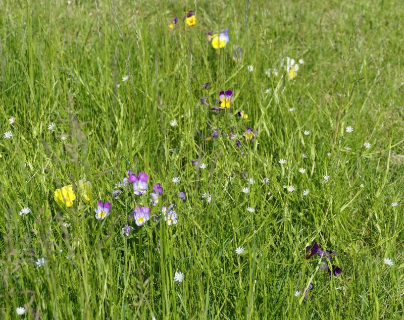 Zwischen den Hornveilchen im Rasen blühen jetzt dekorative weiße Sternchen: