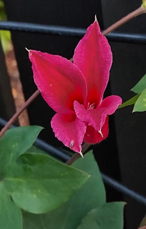 Nun voll in Blüte am Rosenbogen: Clematis Princess Diana.