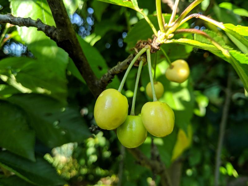 ein aktueller Zwischenstand: Die Kirschen sind leider alle dunkelrot geworden. Wunderschön und knackig, aber eben nicht rot-gelb. Problem ist jetzt, dass ich keinen Platz für einen zweiten Baum habe, aber unbedingt Rainier wollte. Das Dilemma muss ich jetzt noch lösen.