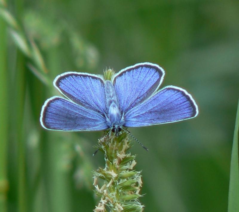 Gestern Abend gab es Bläulingslicht, die Sonne war weg. Bei Knallsonne blendet oft der Silberschimmer. Polyommatus icarus, ein Männchen. Bläuling von links, Bläuling von rechts... ;D