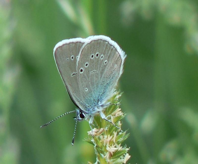 Normalerweise überfordern mich Bläulinge heillos, aber hier meine ich, den Rotklee-Bläuling Cyaniris semiargus in der Wiese entdeckt zu haben.