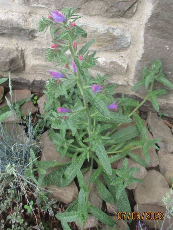 Natternkopf scheidet aus. Der ist zweijährig und verzweigt sich nicht. Die Unbekannte wurde dieses Jahr im Februar auf der Fensterbank ausgesät.