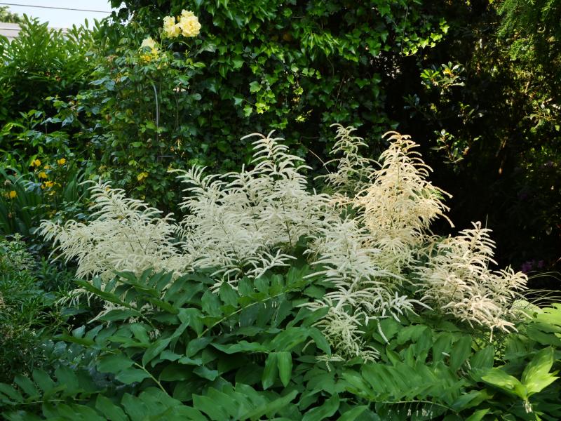 Auf dem Höhepunkt der Blüte ist Aruncus 'Zweiweltenkind'.Bei der Hitze wird es mit der Pracht leider bald vorbei sein.