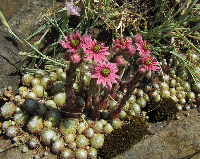 Hier blühen die Kartoffeln noch nicht, dafür die Semperviven.