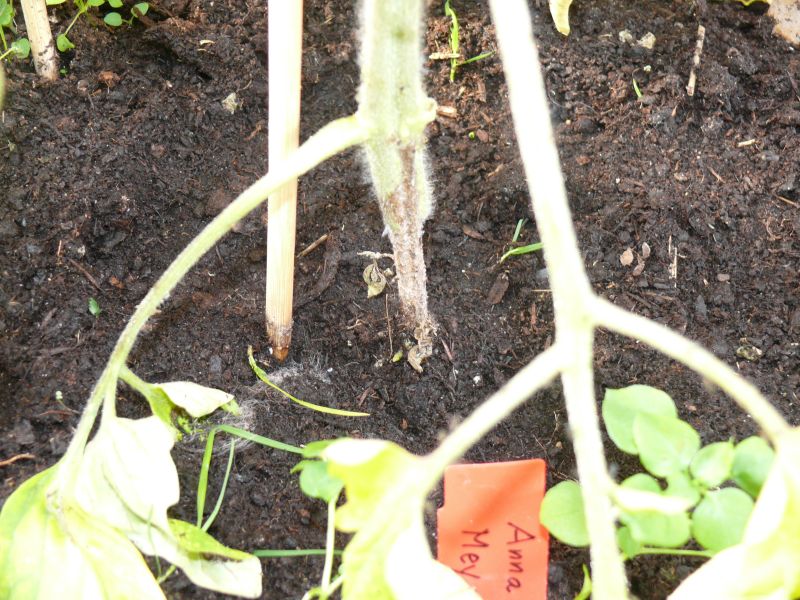 Dieses Jahr hat es wieder eine Tomatenpflanze mit der Stängelfäule erwischt.