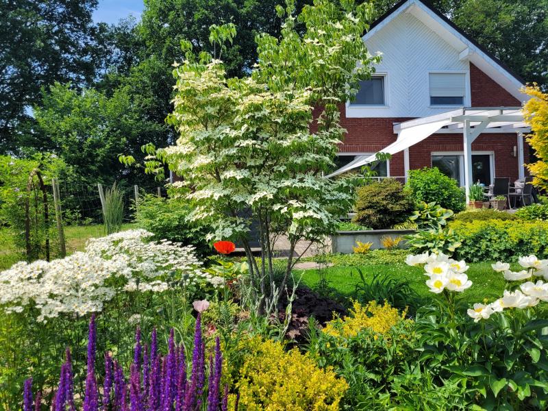 Cornus kousa 'Milky Way' überrascht in Vollblüte. :o