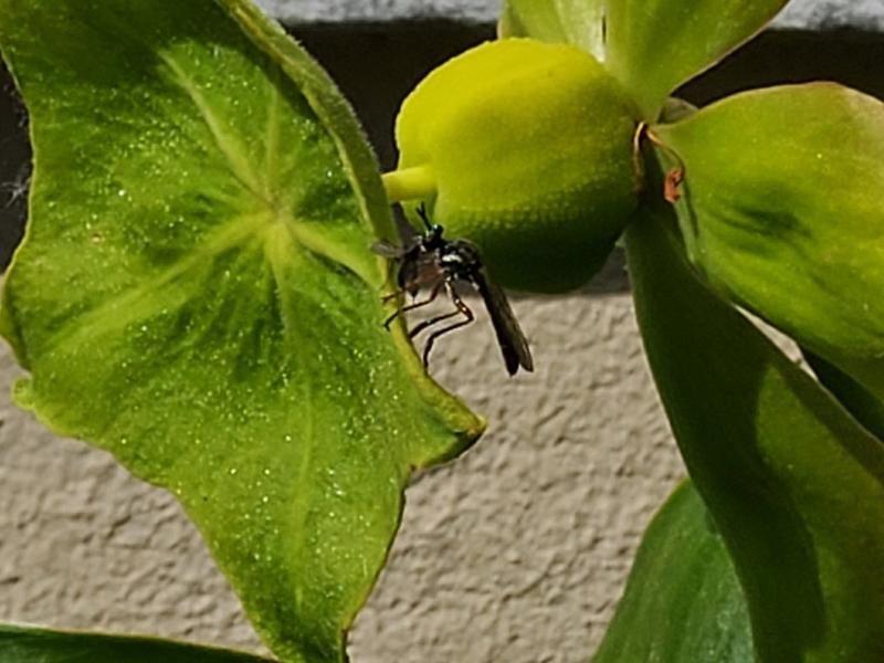 Die Beute scheint eine kleine Fliege zu sein.