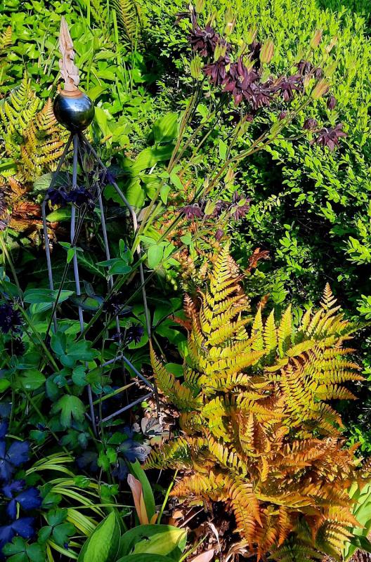 Vom Dryopteris erythosora hatte ich mir vor Jahren ein paar schöne sattgrüne Exemplare im Spätsommer gekauft, um zu schauen, wie Farne hier in meinem neuen Garten überhaupt gedeihen. Im nächsten Frühjahr war ich dann ganz empört, dass sie so bunt austreiben.