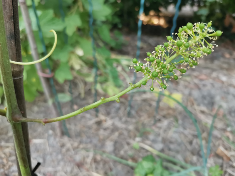 Heute nochmal Schwefel gespritzt, die Nächte sind frisch geworden, jetzt auch tauträchtig, das gefällt Oidium sehr. Dieses Jahr setze ich mehr auf Schwefel wie auf Kaliumhydrogencarbonat oder Lezithin. Ausdünnen erst nach Abschluss Blüte. Schultern an den Gescheinen schneide ich nicht, zu viel Gefitzel und zu viel Schnitte, ich halbiere die Trauben vielmehr bei manchen Sorten mit Riesengescheinen - untere Hälfte weg. Hat viele Vorteile. Das sind die Beeren, die ohnehin schlechter versorgt werden und kleiner bleiben.