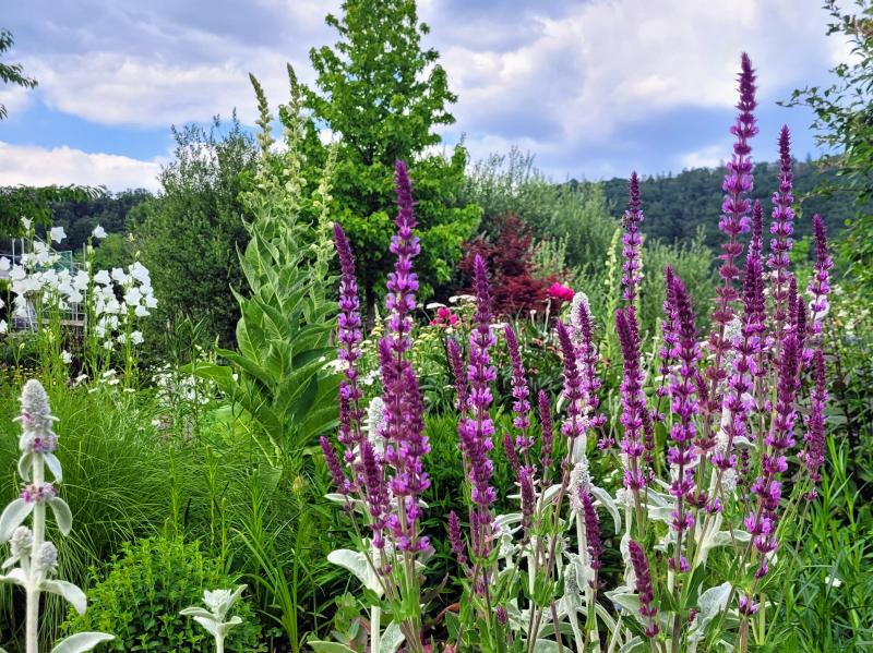 Wirklich wunderschön deine Beete, Buddelkönigin! Diese Üppigkeit! Die hinreißenden Pflanzkombinationen! Und die Farbe dieses Salbeis! Wie heißt denn diese herrliche Sorte?