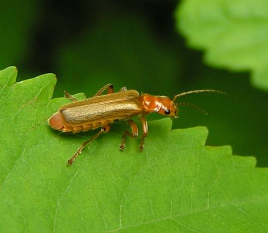 Hallo,es ist auf alle Fälle ein Käfer aus der Familie der Weichkäfer (Cantharidae). Die Art kann ich aus dieser Perspektive nicht genau definieren, auf alle Fälle ist es ein Cantharis spec.Herzliche GrüßeIngrid