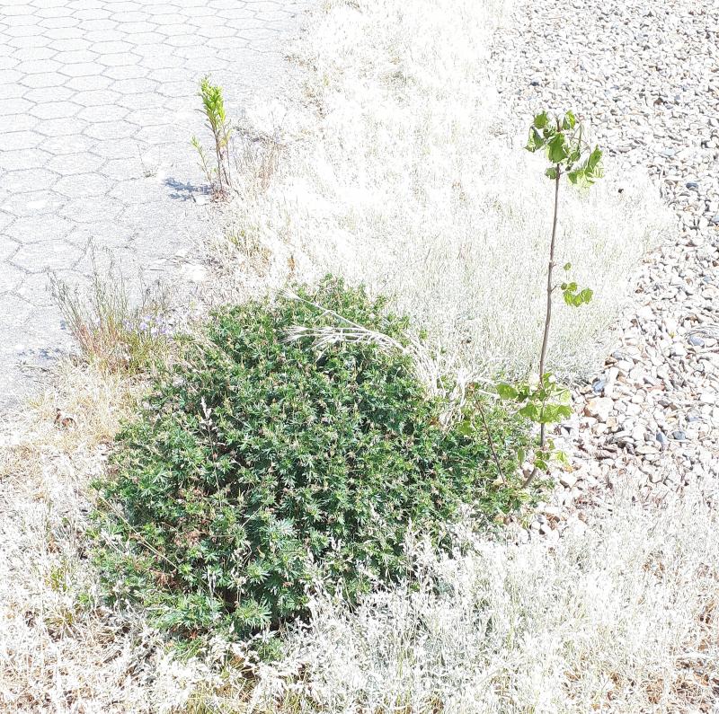 Ich gehe seit Jahren auf solchen Stücken auch den Weg wie Chica. Säe Mohn aus, habe dort Thymian, Salbei, Rosmarin, hohe Fette Hennen und andere wasserspeichernde, Fingerhüte, Kornblumen.... Kein hoher Aufwand, arbeitsmäßig + monetär. Manches verschwindet, manches kommt wieder. Die Samen ernte ich an anderen Stellen und säe dort wieder aus.