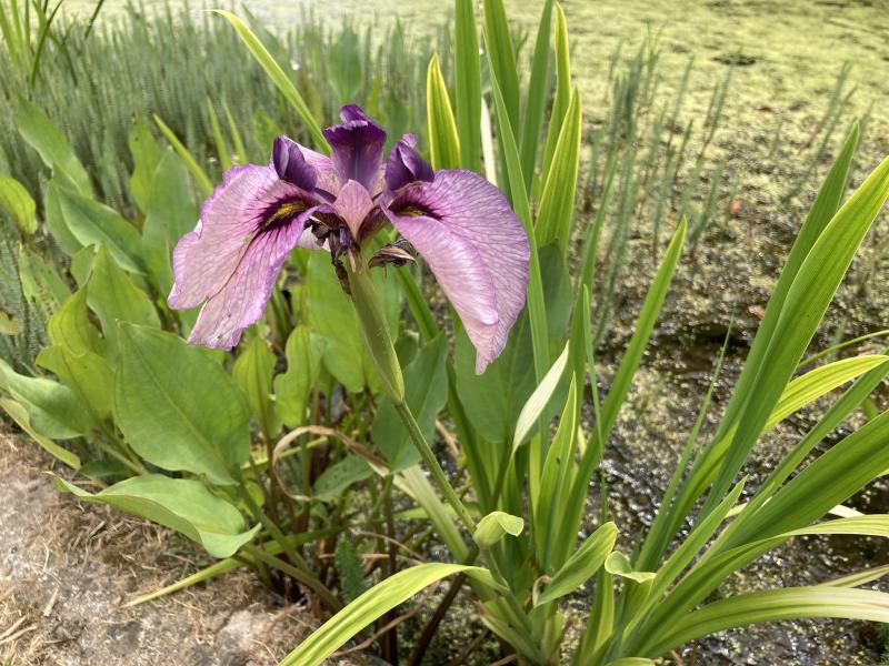 Iris Lousiana hat den Vorteil, nicht ganz so empfindlich zu sein, etwas gerupft sieht sie schon aus.Eine Iris ensata an der Einflugschneise vieler Vögel hat es nicht vertragen.