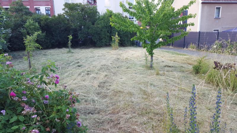 Dank des Wiesenmähers der Nachbarin konnte ich gestern den Mann überreden, die Wiese umzulegen.