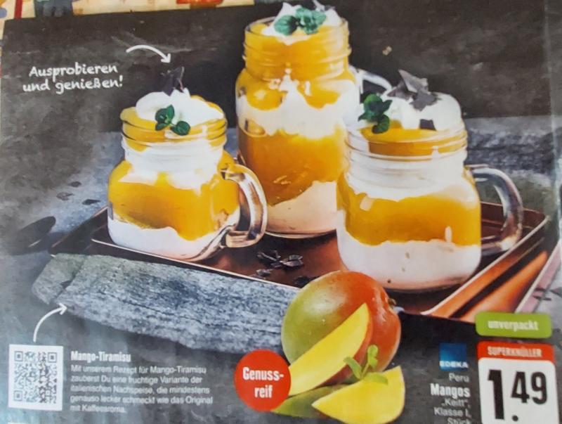 Als Nachtisch ein Mango-Tiramisu. Rezept müsste auf der REWE HP sein. Denn Flyer von dieser Woche.